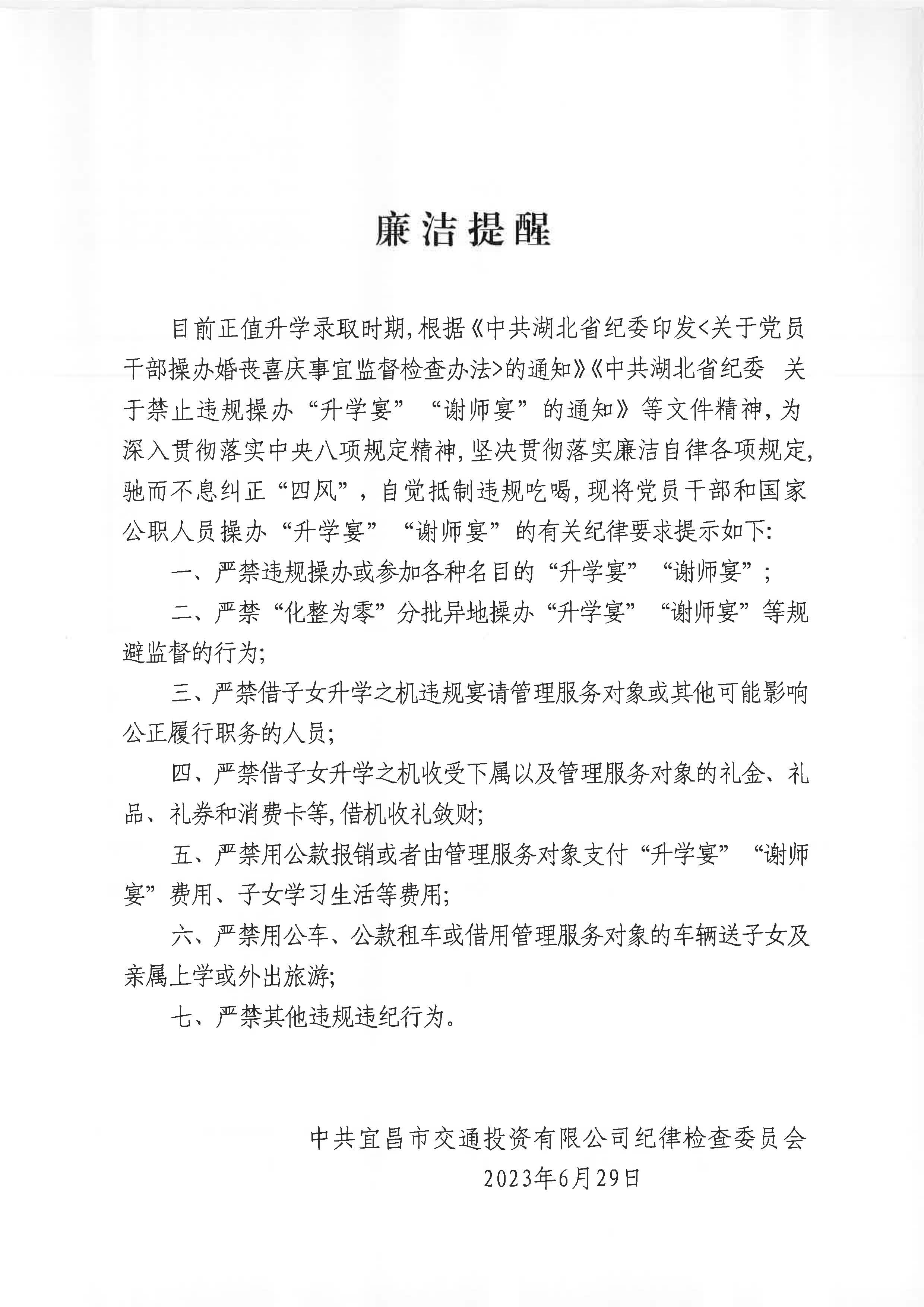 廉潔提醒